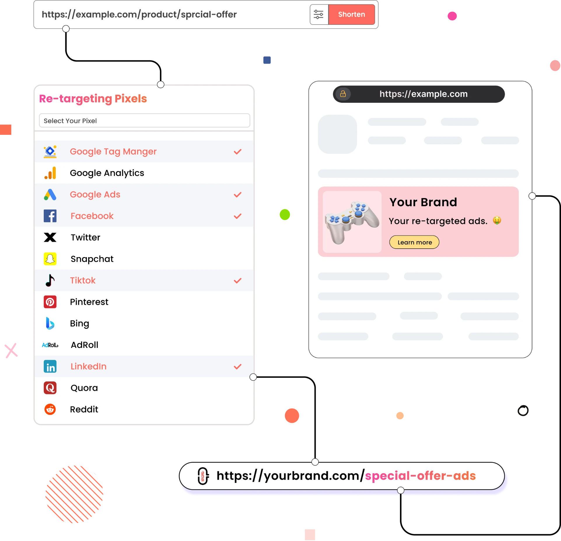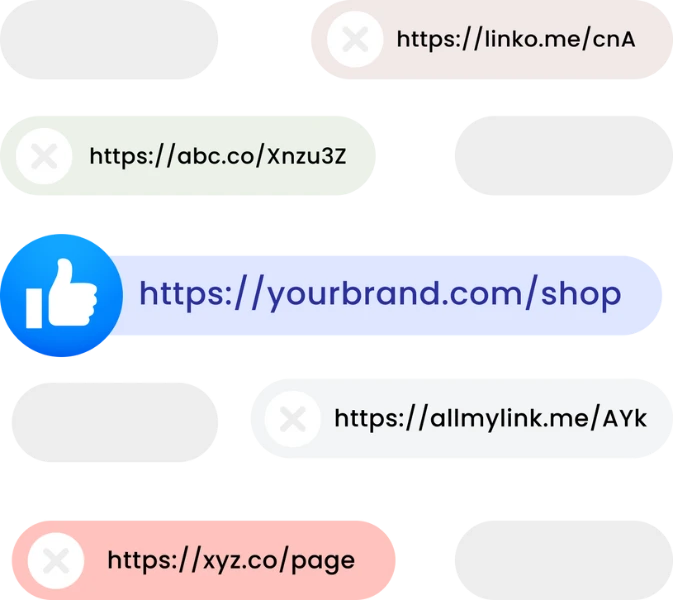 - Show your customers that you’re a trusted source by branding your links with your custom domain and slug.