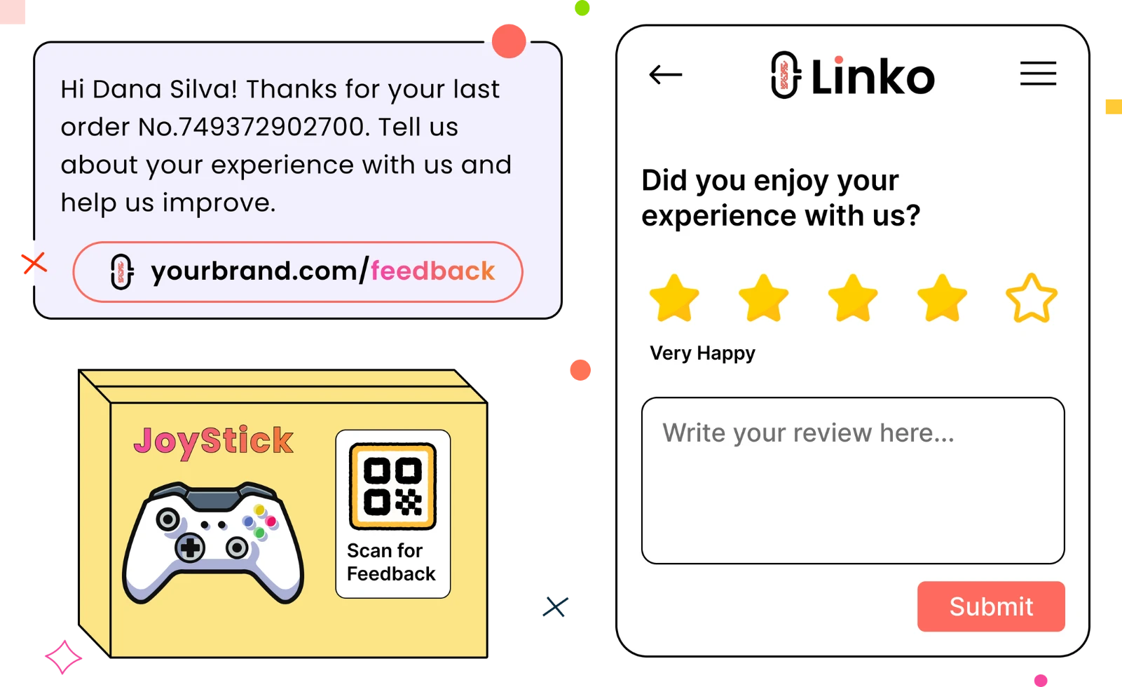 - Send branded short links in order confirmation emails or post-purchase messages to encourage quick feedback.